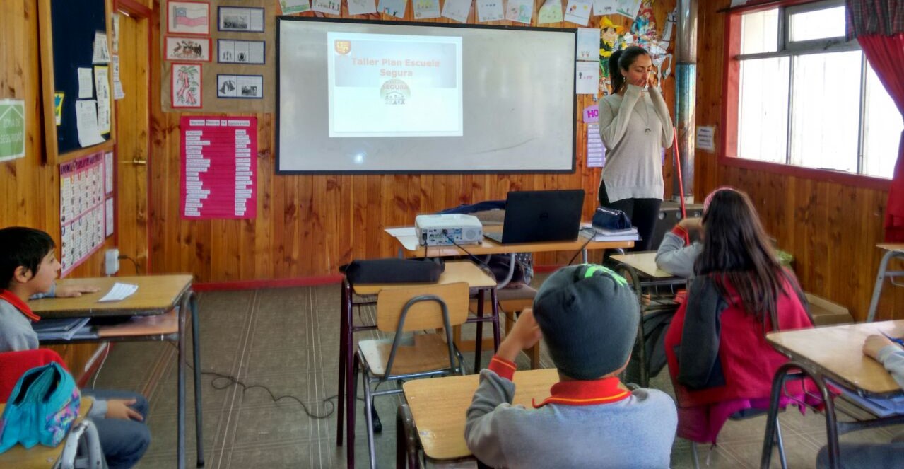 Para socializar el Plan de Seguridad Escolar del establecimiento, la psicóloga Cecilia Rojas, está realizando una serie de talleres. Uno de ellos se llevó a cabo en 5° básico, y la idea fue presentarles a los alumnos los protocolos de seguridad en casos de incendio, sismos y accidentes, para que ellos estén al tanto de estos temas, los conozcan y puedan saber cómo actuar frente a una situación de estas áreas.