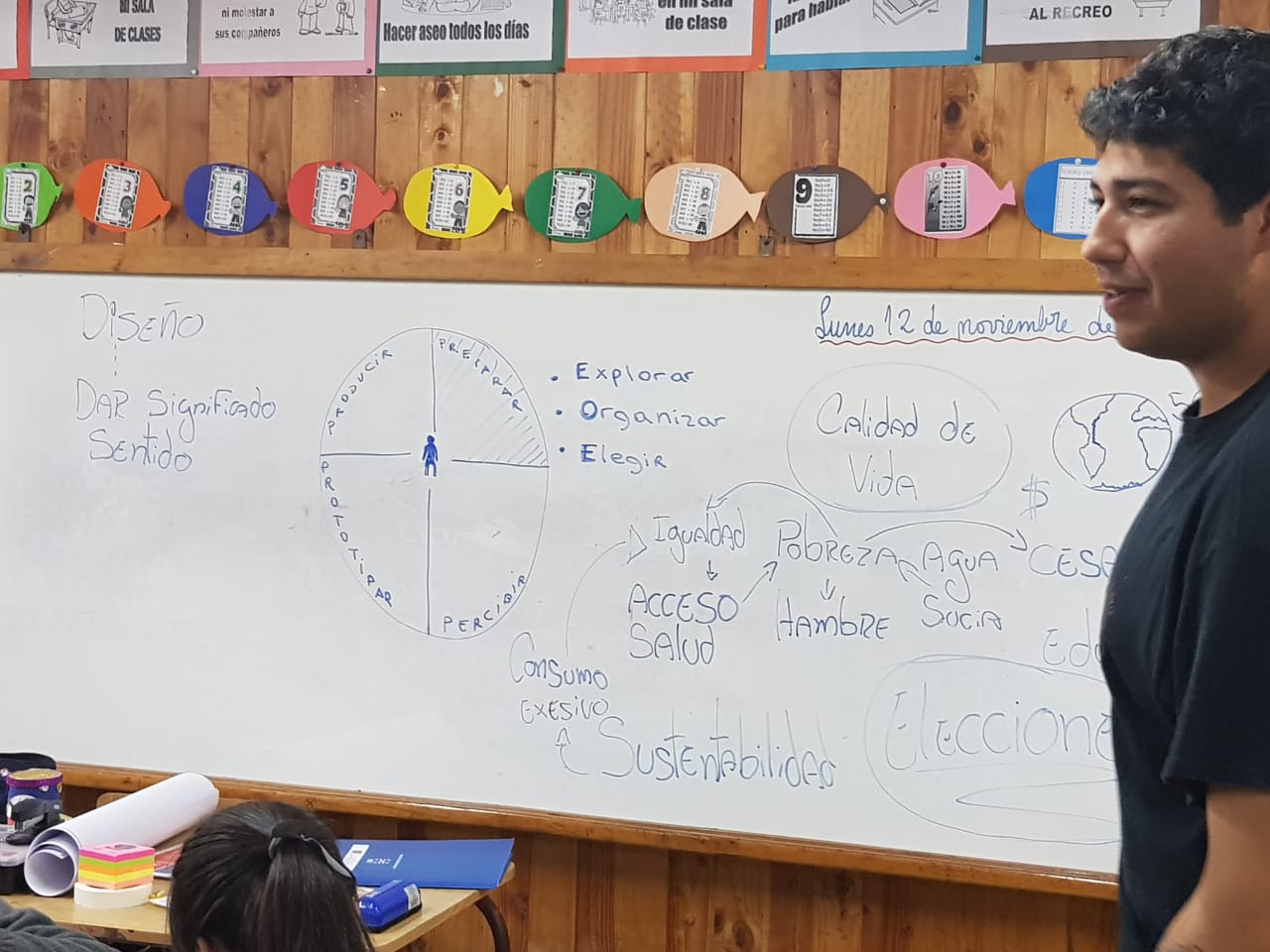 Durante una semana se desarrolló en nuestra escuela la segunda parte del proyecto que la Universidad del Bío Bío está ejecutando en el establecimiento, cuyo objetivo principal es trabajar con los profesores de manera colaborativa y desarrollar un modelo desde su base. El programa ABED, que significa Aprendizaje Basado en Diseñar y es financiado por la Comisión Nacional de Ciencia y Tecnología, Conicyt, ya cumplió su primera fase de capacitación a los docentes de la escuela el primer semestre y actualmente está en la etapa de acompañamiento. Para ello, cuatro tesistas de la carrera de Diseño Industrial de la casa de estudios superiores, trabajaron con los niveles 5° y 6 ° básicos, apoyados por los profesores, sobre las planificaciones de las actividades para la semana, presentándolas a los niños por medio del enfoque de ABED. “Los alumnos se ha mostrado muy participativos y la idea es entregarles herramientas para hacerse cargo de sus aprendizajes. Cuando pierden el miedo y se motivan, los contenidos que trabajaron no se les van a olvidar”, explicó Gabriel Hernández, director del Departamento de Artes y Tecnología de Diseño de la Universidad del Bio Bío.