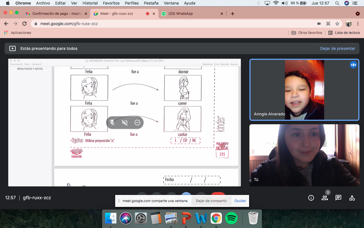 Las teleterapias que realiza nuestra fonoaudióloga, Constanza Bahamonde, consisten en trabajar en conjunto algunas de las actividades que se entregan en el cuaderno fonológico que la profesional prepara y que se entrega en los hogares de los niños.