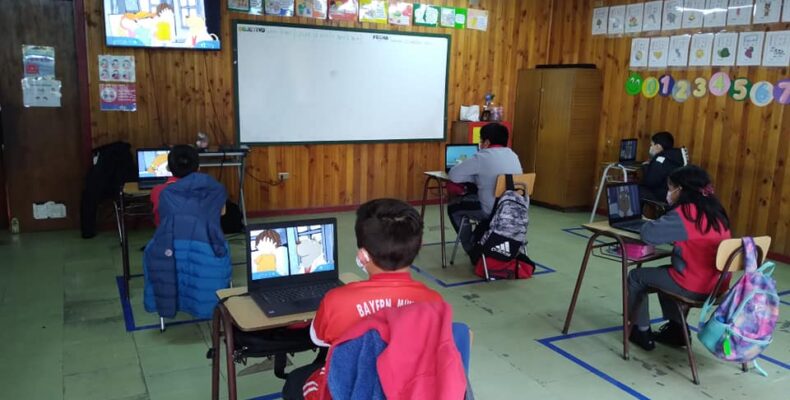 Un interesante trabajo desarrolló la tía Yocelin Igor con los niños de primero y segundo básico. Se trató de la utilización de computadores para una actividad de refuerzo del área de Lenguaje, en el que los alumnos ingresan a un software de aprendizaje con letras y palabras. “Con este recurso…